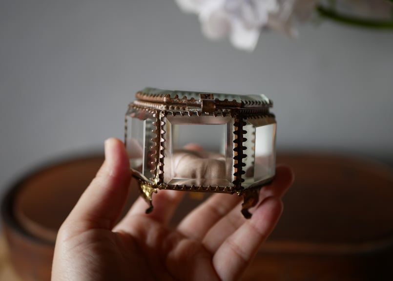 - 美術品・アンティーク・コレクション > 工芸品 > ⚫︎フランスアンティーク⚫︎美しいオルモル調装飾 厚ガラスのジュエリーケース 希少 ⚫︎フランスアンティーク⚫︎美しいオルモル調装飾 厚ガラスの