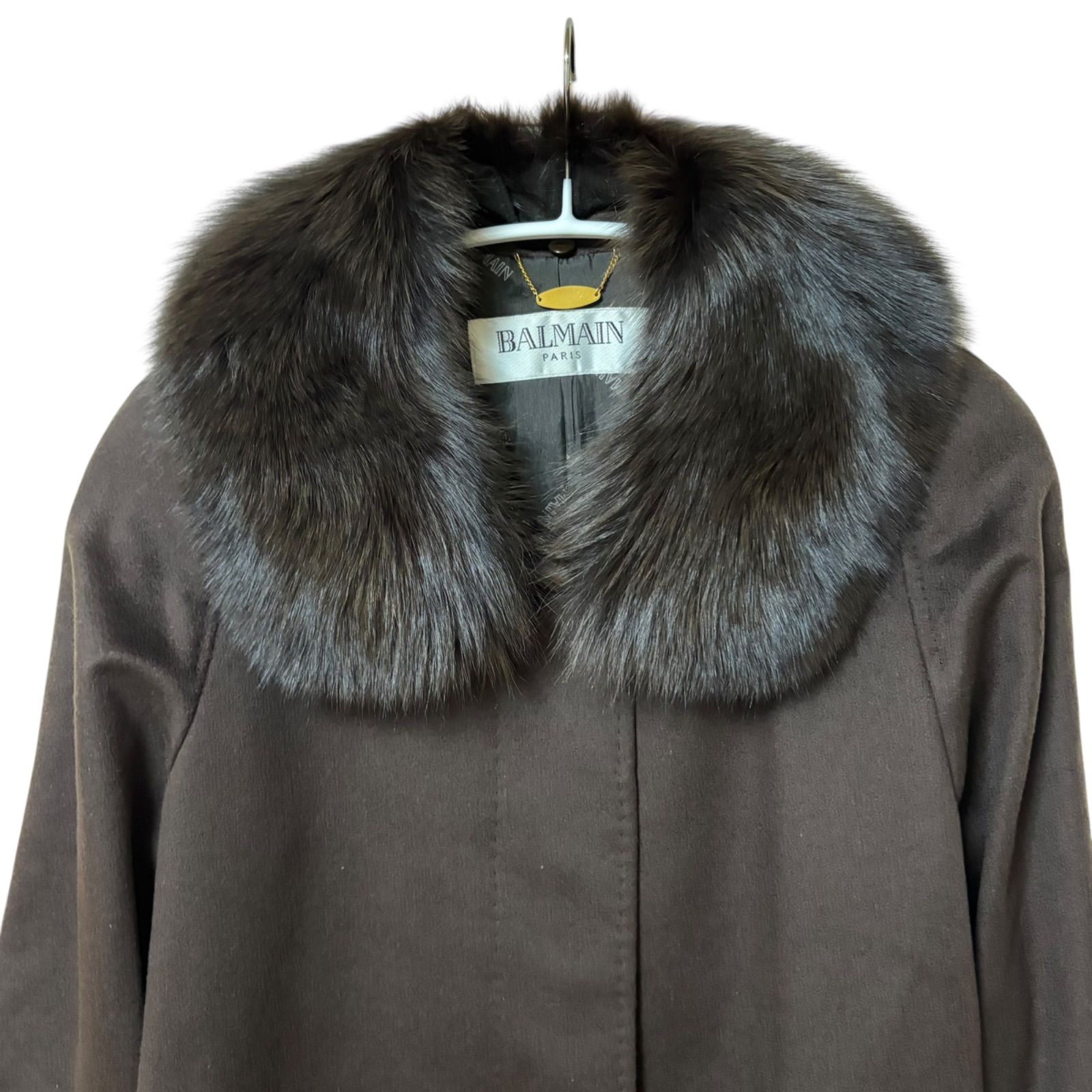 | メーカー | BALMAIN ファー付きロングコート ダークブラウン ZM1677 |