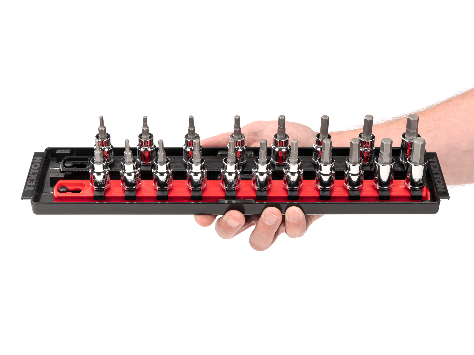 TOM38+34 3/8 Inch Drive Hex Bit Socket Set, 19-Piece (Rail) | Tekton | SHB91202