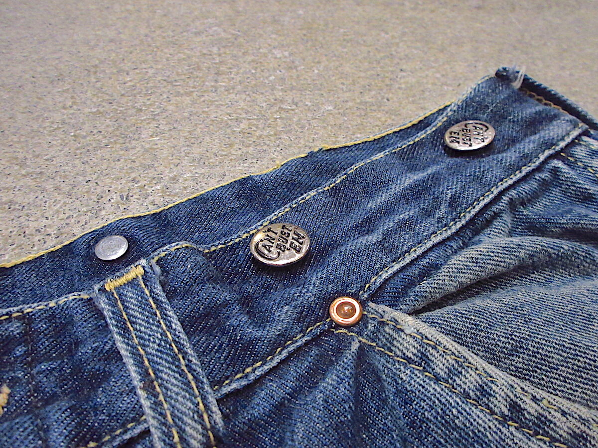 | 商品の特徴 | 1950's CAN'T BUST EM ボタン 6個セット ヴィンテージ 1950's CAN'T。1940〜50's CAN'T BUST'EM 5pocket denim pants × 3‼️ スペシャル × 3。ビンテージ40's50's○CAN'T BUST'EMサスペンダーボタン付きジーンズ。1950's “ CAN'T BUST'EM(キャントバステム) ” / BLACK DENIM PANTS。訳すとその名のとおり決して破れないキャントバステムの1950年代のボタンです後にLeeに吸収されてしまい現存しないビンテージ好きな方には大変人気のあるワークウェアブランドです此方はリベットで打ち込むタイプのボタンですリベットはありませんが手芸屋さんで手に入ると思いますチェンジボタンや縫い付けるタイプのボタンではありません長期保管品ですので神経質な方の購入は固くお断りしますバラ売りもお断りしますご理解あるお方のみよろしくお願いしますカラー···シルバー素材···その他金属キャントバステム キャントバステムボタン ビンテージデニム ビンテージボタン ヴィンテージボタン ヴィンテージデニム cantbustem | ||