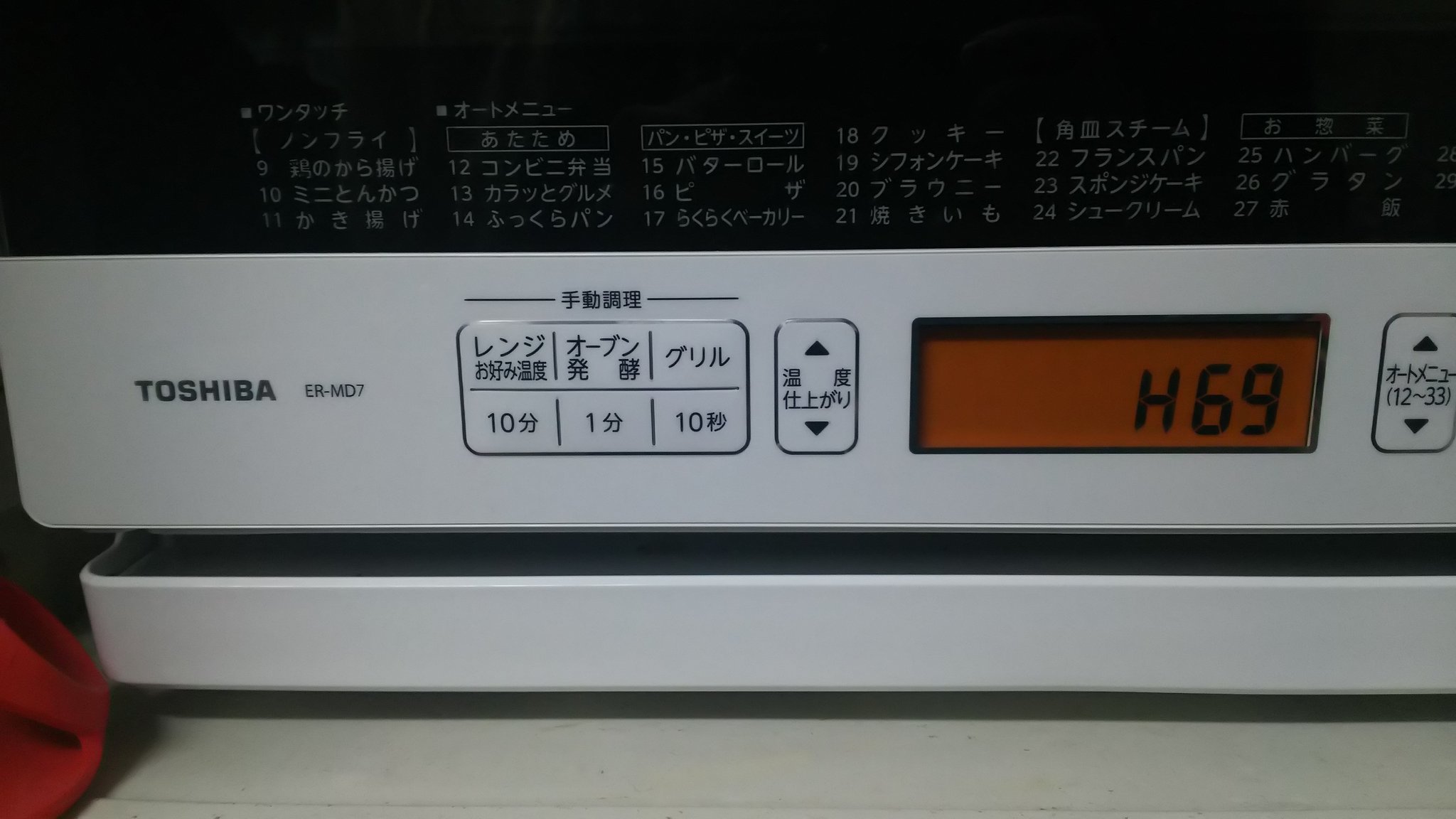 | 商品の特徴 | 東芝 電子レンジ ER-YD3000-K(ジャンク品・H69エラーあり) 東芝 電子。東芝 電子レンジ ER-YD3000-W(ジャンク品・H69エラーあり) - メルカリ。ジャンク品 2022年製 東芝「石窯ドーム」ER-XD3000。東芝の過熱水蒸気オーブンレンジ「ER-YD3000」、ブラックカラーのモデルです。購入から約1年半使用しました。楽天で¥65000 で購入しました最近、「H69」というエラーコードが表示されるようになり、調子が悪いと一日中使えないこともあります。ただし、全く使えないわけではなく、使用できるタイミングもあります。エラーの原因は不明ですが、内部のセンサーや基板の不具合の可能性があります。修理可能な方や、部品取り・研究・DIY用としてご活用ください。本体の外観は比較的きれいで、目立つ傷やへこみはありません(小さなスレや使用感はあります)。庫内も大きな汚れはなく、全体的に良好な状態です。説明書、角皿2枚、焼き網は揃っています!商品状態•ジャンク品(H69エラー発生、不安定な動作)•通電・操作確認済み(エラーが出ないタイミングでは使用可能)•ブラックカラー•簡易清掃済み付属品•説明書•角皿×2•焼き網※ジャンク品としての出品です。現状渡し・返品不可にご理解いただける方のみご購入ください。東芝 モデル名···石窯ドーム ER-YD3000。東芝 TOSHIBA 石窯ドーム ER-YD3000 エラーあり - メルカリ。SHARP オーブンレンジ RE-SD18A-B。本日限定値下げ‼️ TOSHIBA 電子レンジ ER-PD7(W)。【ブラック4枚焼き】アラジン グラファイトグリル&トースター AGT-G13BK。美品♡2024年製バミューダ オーブンレンジ ブラック。【新品未開封】SHARP HEALSIO オーブンレンジ AX-NS1A-W。アラジン グラファイトトースター 2枚焼き ブラック 新品未使用。早い者勝ち★新品未開封★PanasonicコンパクトオーブンNB-DT52-W白。TOSHIBA オーブンレンジ ER-RD7(W) 2017年製。ジャンク品 BALMUDA バルミューダ オーブンレンジ stainless | ||