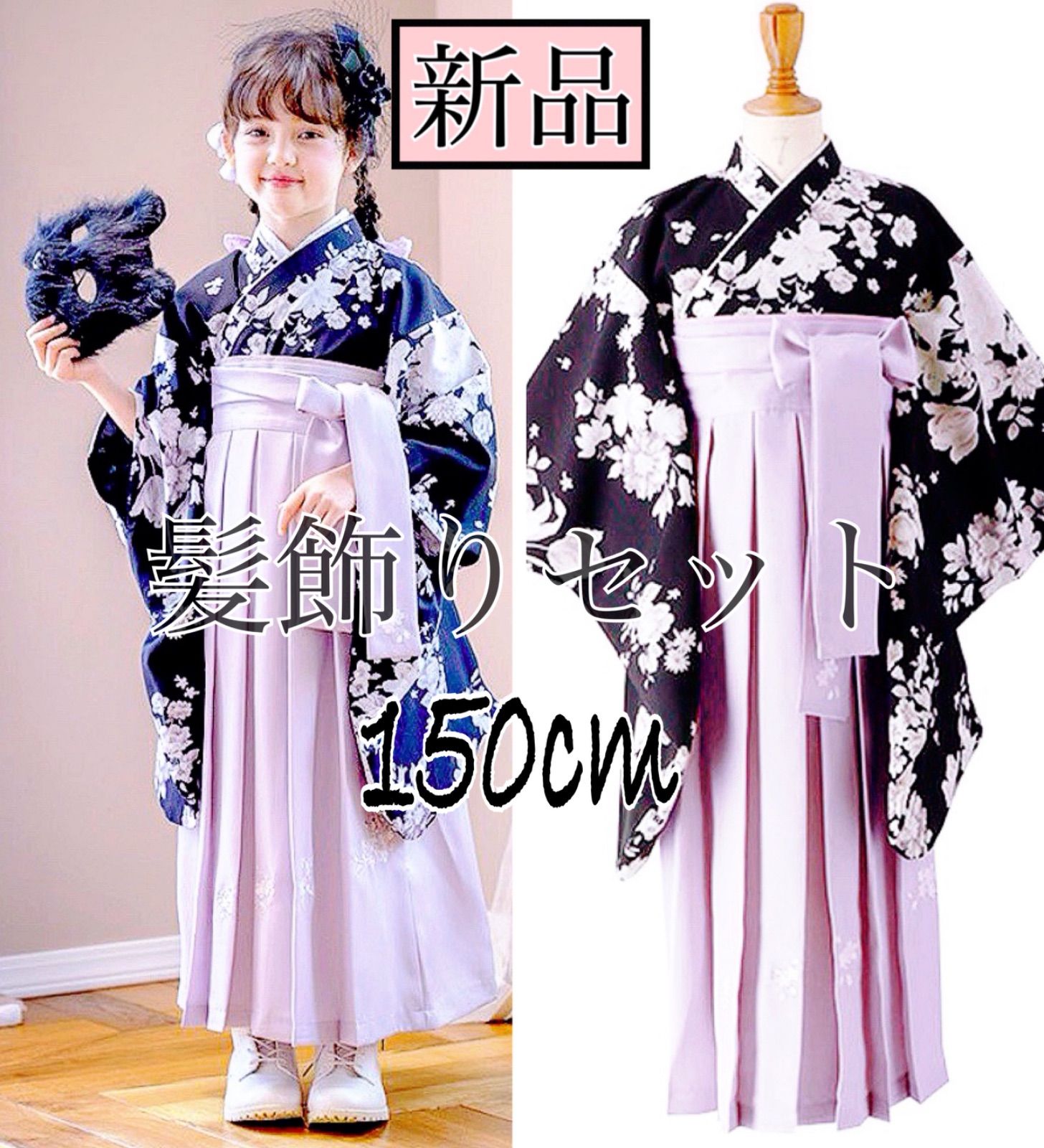 | メーカー | キャサリンコテージ 袴 150 黒着物×象牙袴 肌襦袢付き 髪飾り 卒業式 |