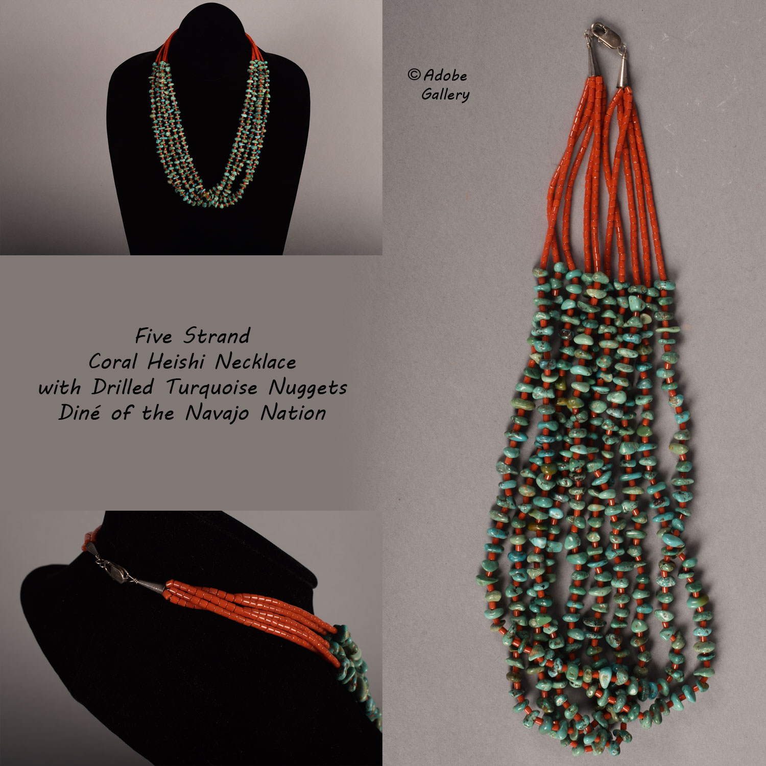アクセサリー indian jewelry navajo necklace Native American Coral Jewelry Turquoise Necklace C4643-52 - Adobe