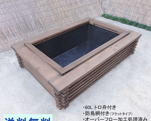 | メーカー名 | aeba181d8c7f4 | ブランド名 | 高さの有るビオトープ 60L トロ舟&木枠セット(3D防鳥網付き・棚付き) |